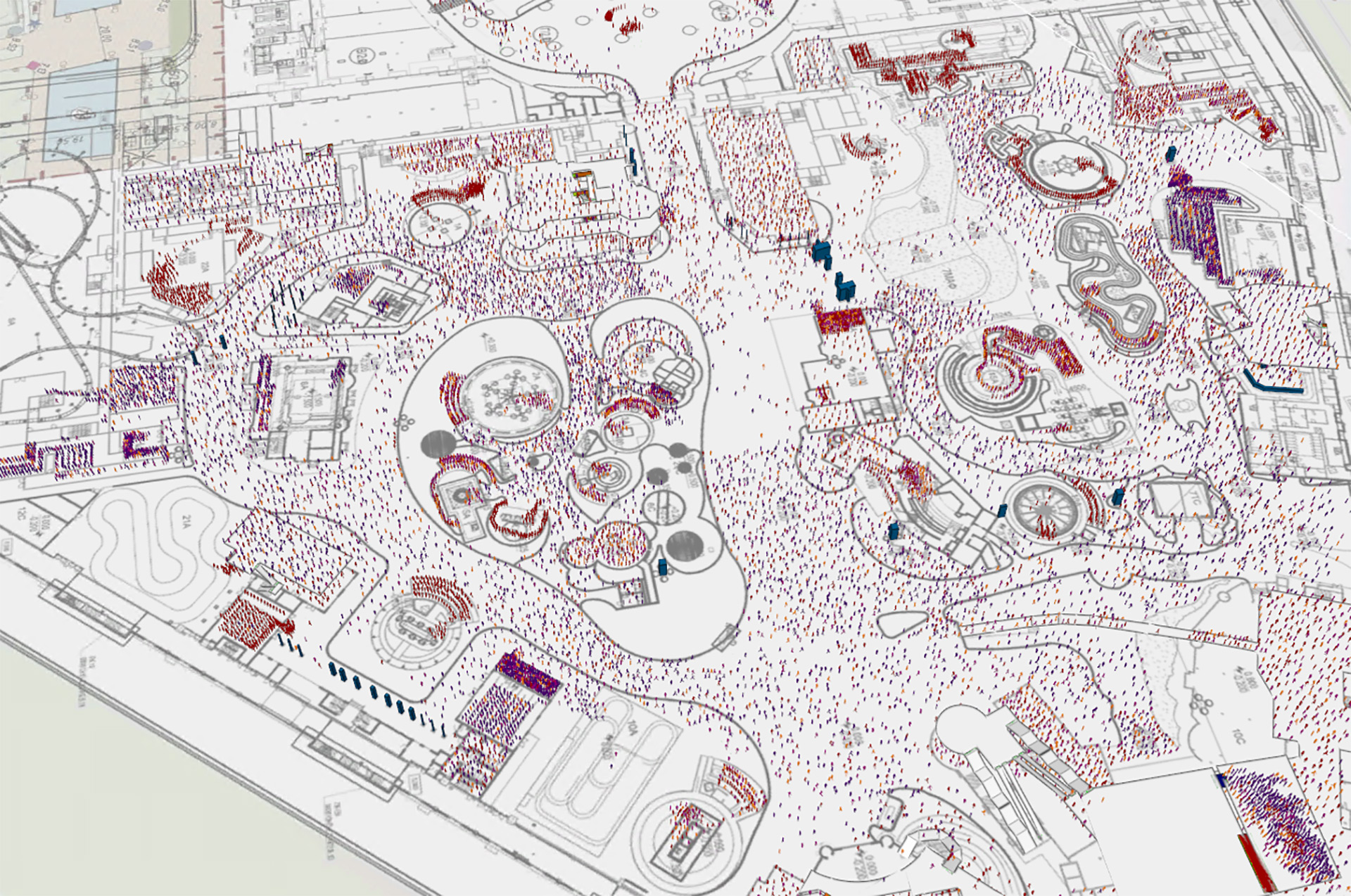 MIC-HUB's project focused on analysing crowd dynamics during typical operational days. The aim was to estimate space utilisation and density levels, assess accessibility to the different areas of the park, and identify potential critical issues related to the design and anticipated visitor numbers.