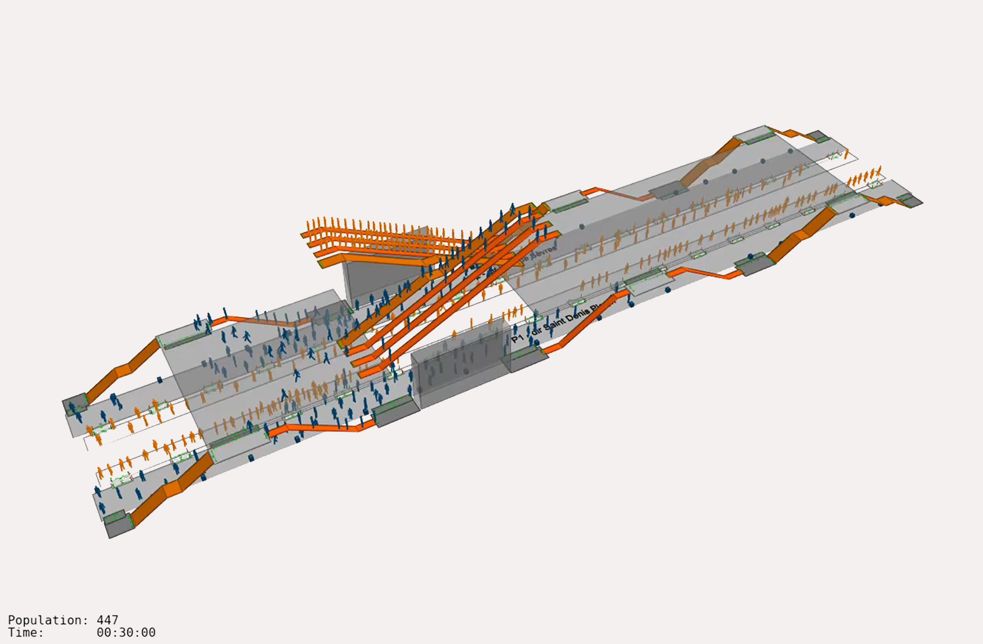 MIC-HUB ha supportato il lavoro di FBCC nella definizione dei flussi di passeggeri, analizzando i dati di traffico previsti e sviluppando una serie di modelli pedonali di micro-simulazione, con l'obiettivo di valutare la circolazione dei passeggeri, la capacità dei sottosistemi e il trasporto verticale, nonché identificare eventuali criticità che potesse interferire con i flussi pedonali, sia sul tracciato dato che sui layout sviluppati da FBCC.