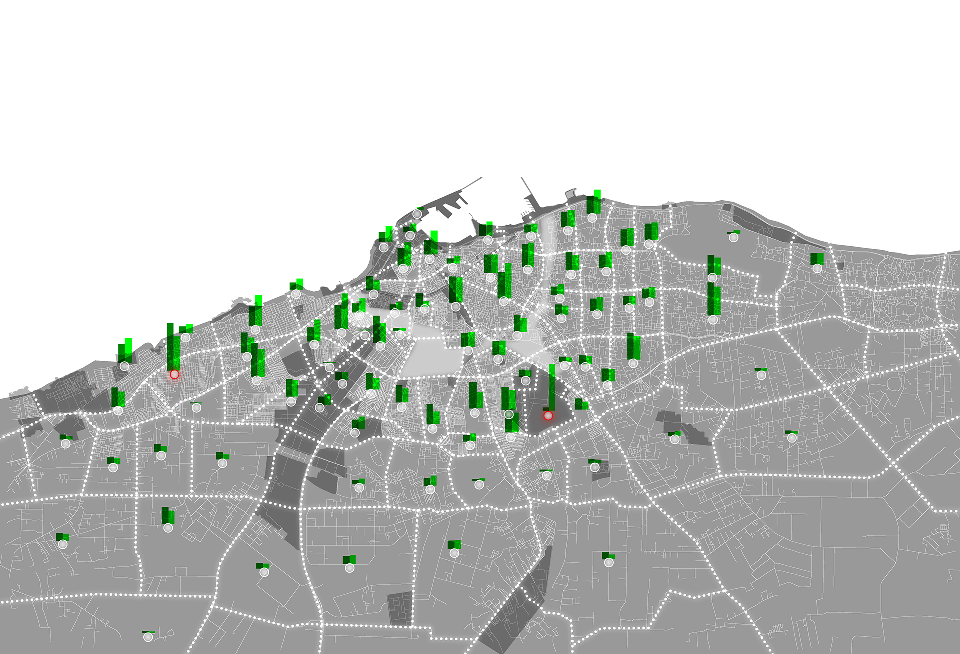 Identificazione e valutazione di una serie di percorsi sia all'interno che all'esterno della Tripoli Green Belt. I corridoi proposti, insieme alle relative tecnologie di trasporto, sono stati analizzati attraverso un processo di revisione tecnica. È stata quindi condotta un'analisi multicriteria per valutare le principali caratteristiche, i punti di forza e i limiti dei sistemi di trasporto pubblico proposti.