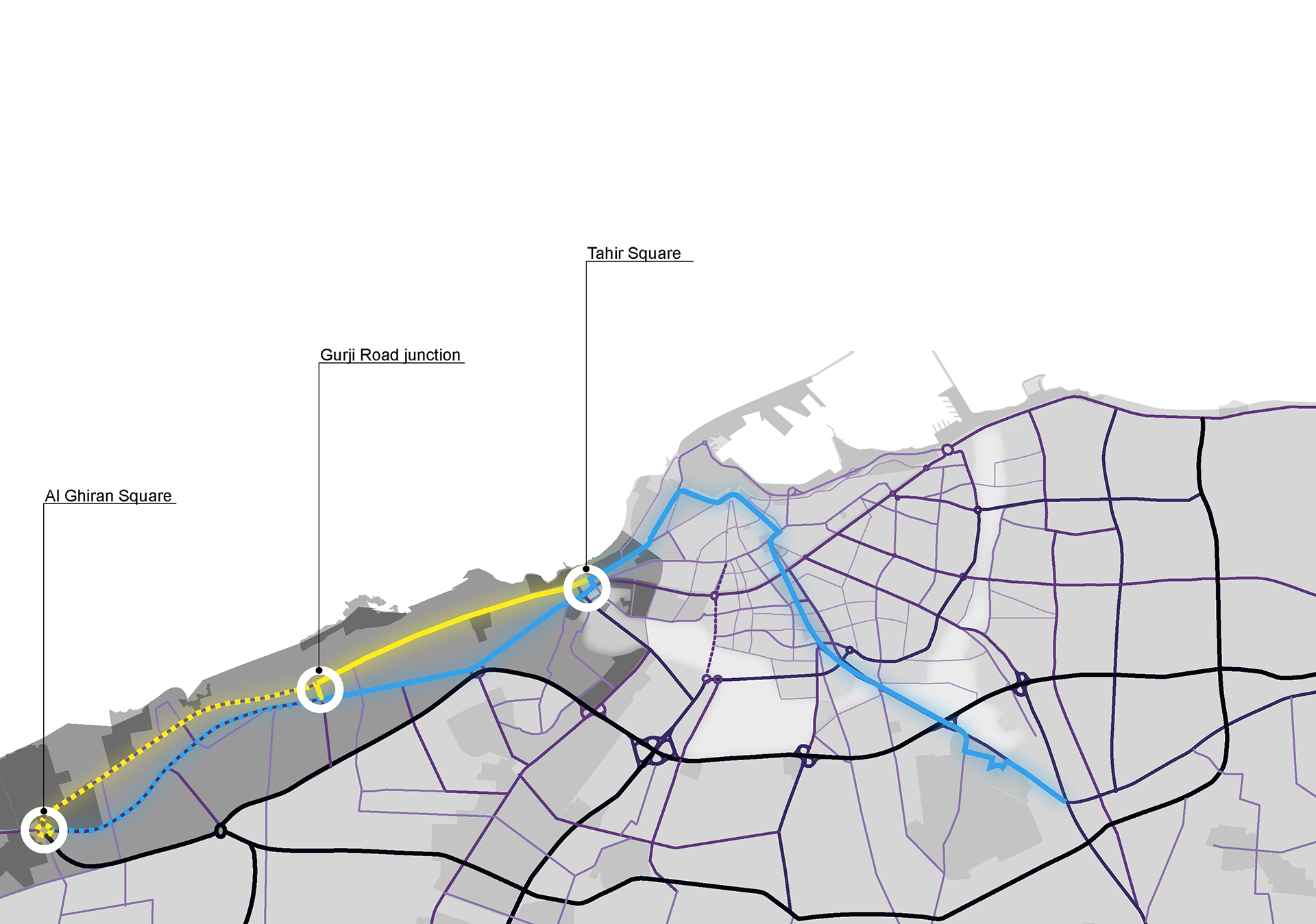According to geometric assessment and the main direction of Tripoli’s urban expansion, the proposed Pilot Line will run east-west and connect the city centre with the main squares.