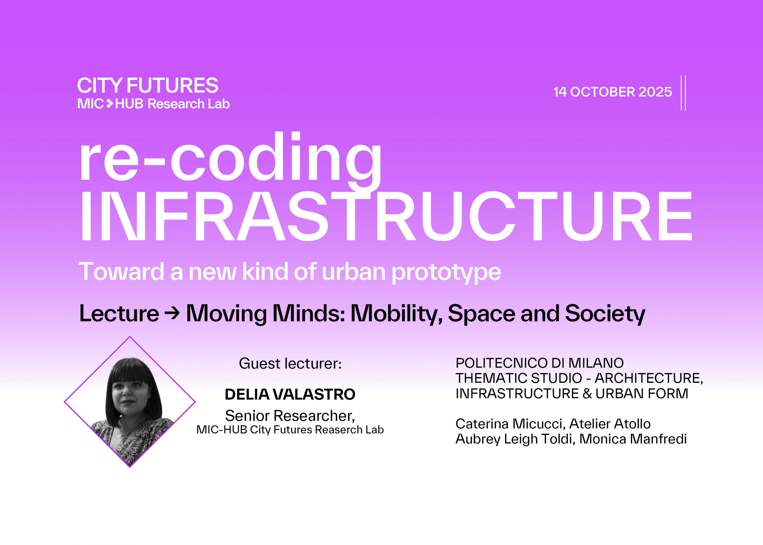 Delia Valastro, Senior Researcher at the MIC-HUB City Futures Research Lab, will give a lecture at the Politecnico di Milano as part of the Thematic Studio Master’s programme in Architecture, Infrastructure & Urban Form.