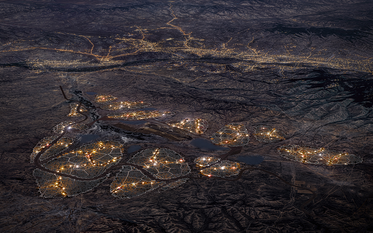 At the heart of the project is the Amid Od, literally ‘stars of life’, which structure the entire city. Inspired by the ger (Mongolian yurts), these circular centres form an urban constellation, representing new landmarks and identity symbols for future generations.
