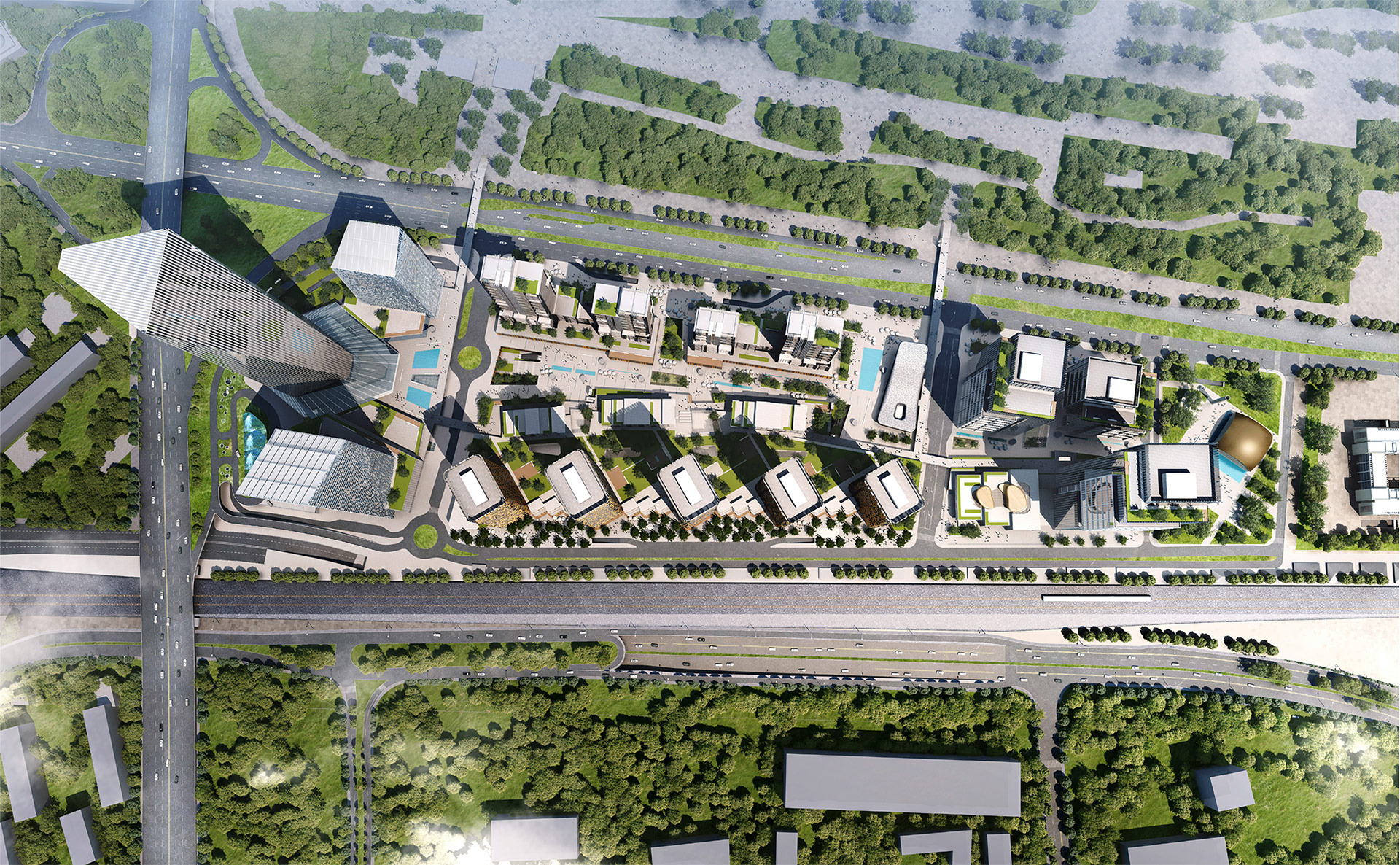 The work centred on integrating the new district into the surrounding urban network and coordinating mobility systems with the architectural design to enable efficient accessibility and walkability, as well as managing complex flows within a high-density, mixed-use environment.