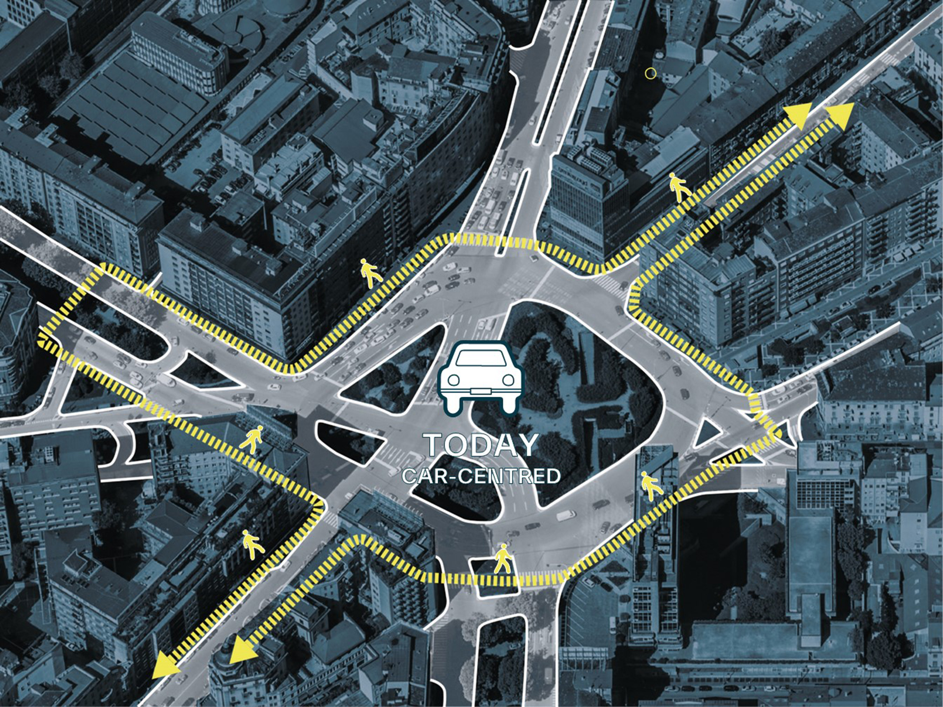 Promoted through an international competition by C40 Reinventing Cities and the Municipality of Milan, the project for the redevelopment of Piazzale Loreto will be an eco-sustainable model for Milan, transforming the car-dominated intersection into an environment that favours sustainable and active modes of transport.