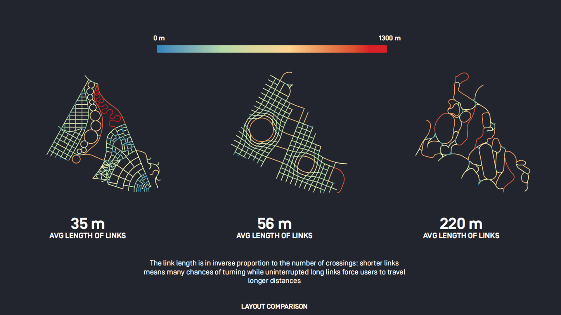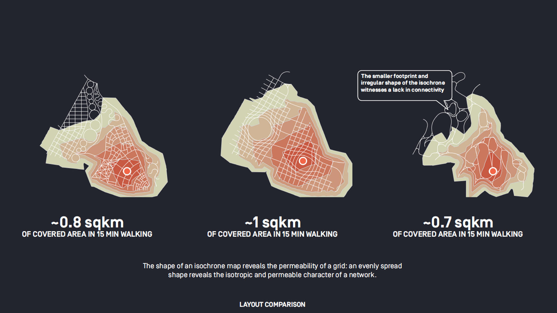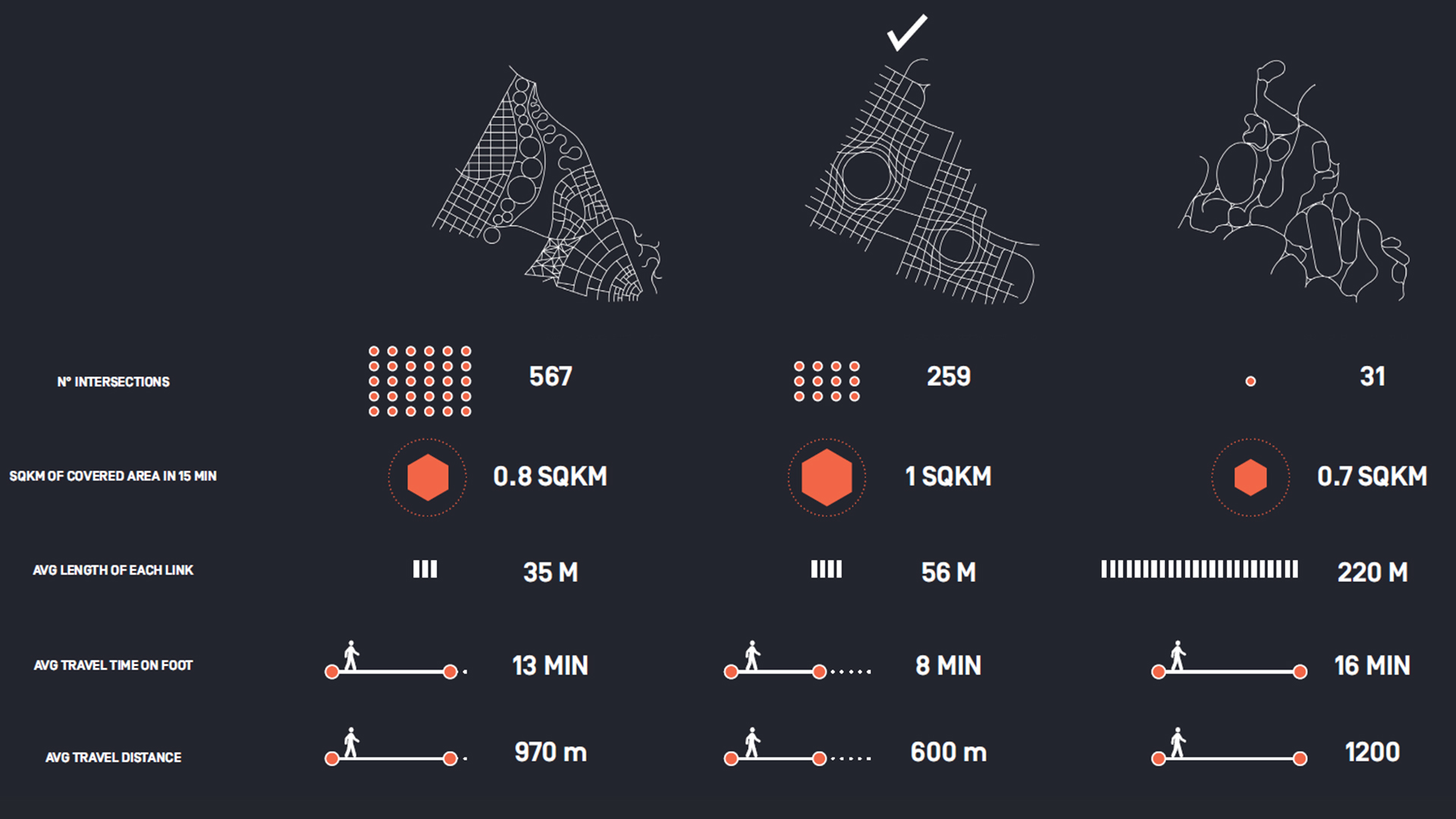 We developed a network which offers an optimal level of accessibility to all buildings, connecting central areas to the external blocks within a 15-minute walk.